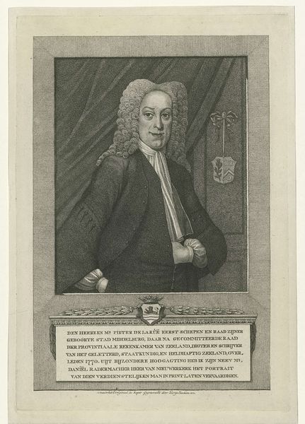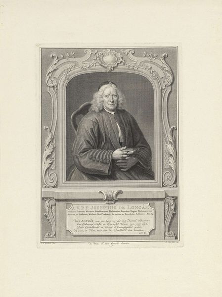 Editor: This is "Portret van Martin Luther," made sometime between 1760 and 1785 by Pieter Willem van Megen. It's an engraving. I'm struck by how this historical figure is presented through this… meticulous process. What stands out to you about this print? Curator: Well, the first thing that catches my eye is the sheer labor involved in creating an engraving like this. Think about the precise hand movements, the pressure applied to the plate, the repetition… It speaks to a specific mode of production and, potentially, a consumer market for such images. Do you think this piece democratizes Luther’s image, making it more accessible? Editor: That's interesting, I hadn't considered it in terms of accessibility. Previously, paintings were the domain of the wealthy; creating multiples, though, seems like a departure in how images were disseminated. Curator: Exactly. Engravings were a key tool in the circulation of ideas during this period. They become objects of trade, commodities shaped by economic forces. Look at the way Luther is depicted. Does his clothing, the setting… how do those details factor into the engraving's value as an object? Is it meant to inspire reverence, or something else entirely? Editor: Now that you point it out, the repetitive marks used for texture, it almost makes his robe seem like fabric one could purchase... and the plain background. Perhaps, rather than reverence, it shows Luther as an everyday man accessible to the general public. Curator: Precisely. And who controlled the production of these engravings? Was it an independent craftsman, or a larger workshop employing a division of labor? Those material conditions fundamentally shape the image we see. Editor: I guess looking at the artistic choices involved also gives clues about how widespread or exclusive this was meant to be! I’ll definitely think differently about prints from now on. Curator: Indeed. By considering the material process, we unveil a whole new layer of meaning.