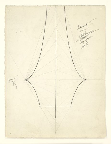 This is Mathieu Lauweriks's 'Design for a Flower Vase', an undated pencil drawing on paper. The structure of the vase is determined by a series of carefully constructed lines, the grid of which is still visible. This underlying structure, with its verticals, horizontals, and diagonals, offers a sense of balance and clarity. Lauweriks’s formalism, with its geometric focus, moves beyond mere representation. This geometrical construction points to an almost Platonic ideal, where the vase becomes more than just a functional object; it becomes a study in pure form and proportion. The drawing transcends its immediate function and opens into philosophical territory. Note the contrast between the rigid grid and the slightly curved lines of the vase, a subtle tension that destabilizes any sense of fixed meaning. This interplay between structure and form, a key tenet of formalism, allows us to appreciate the drawing not just as a design, but as a meditation on the very nature of form.