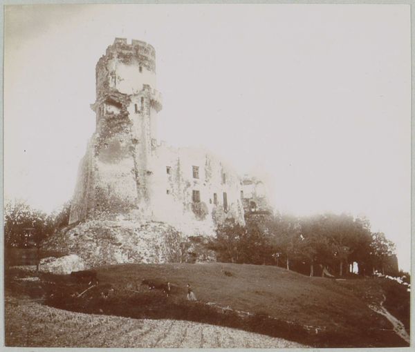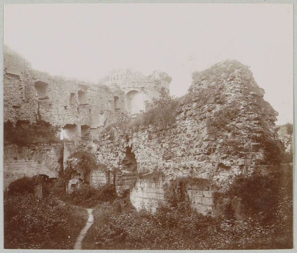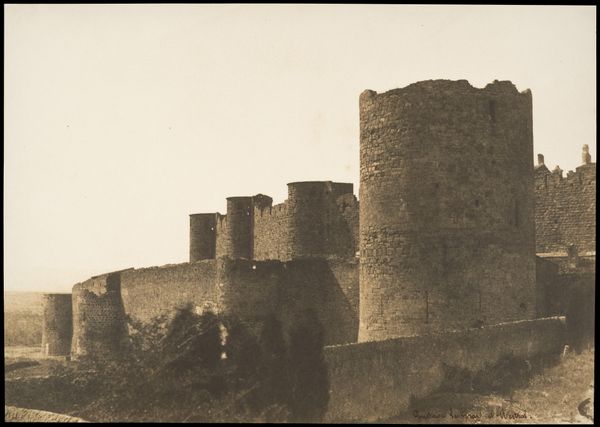 This is a sepia-toned photograph of the Château de Châteaugay, made by Delizy, and it's funny, because it’s so brown, it’s almost like a painting. I love how the light and shadow play here; it's like the scene itself is being developed right before our eyes. The surface has these beautiful imperfections that are part of what makes photography so interesting. When you look closely at the towers, you can almost feel the rough texture of the stone. It's also the way the bushes and trees seem to blend into one another, creating this sort of dreamy effect. It reminds me a bit of Corot, who was all about capturing the feeling of a place. There's a quietness in this image, a sense of timelessness. It feels like a memory, faded but still vivid. Art isn’t about perfection, it’s about feeling. And this photograph definitely has that.