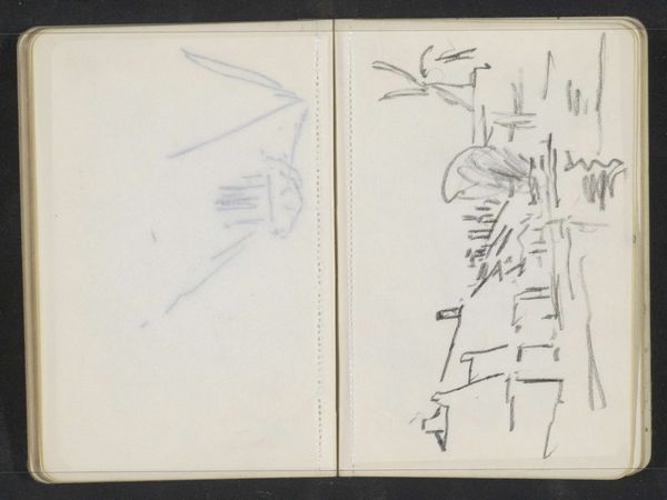 Curator: Let’s turn our attention to "Stadsgezicht met schepen" by Willem Witsen, created sometime between 1901 and 1907. It's currently held at the Rijksmuseum. This compelling piece, made with pencil and ink, is a study in urban landscape sketching. Editor: You know, the moment I saw it, I felt this almost melancholic vibe, like a hazy, distant memory of a port city. The sketchiness really lends it a raw, dreamlike quality, doesn’t it? Curator: Absolutely. I'm drawn to the immediacy. Witsen’s use of line captures not just the image of ships and buildings but also the atmosphere. The material choice is significant, using humble drawing tools elevates everyday life for aesthetic contemplation, documenting a city undergoing modernization. It also brings into play a debate about "high art" status given its informal sketch-like feel and creation via mundane material means, paper and graphite pencil! Editor: It's funny you say that, because it reminds me of being a kid and just filling sketchbooks. No pressure, just pure observation. Maybe that's part of its charm; it bypasses the polished veneer of a finished piece and gives us direct access to Witsen's thought process. Curator: Precisely! We see his process and considerations. Look how the placement of the boats within the composition uses implied perspective and light tonal variation to add density to his marks making for the optical illusion of spatial recession and volume! Editor: You're right. There’s a rhythm here, a kind of visual shorthand for a complex scene. It almost makes me want to pick up a pencil and try to capture the essence of something. It really democratizes art making—less about mastery, more about engagement. Curator: Indeed. "Stadsgezicht met schepen" offers a window into a specific time, yet also demonstrates how readily-available materials and an urban-focused study still offer the power to transform observation and labor to connect directly with an audience. Editor: Thinking about it, the magic really is in the unfinished quality. Like life itself, perpetually in progress. Curator: A thoughtful observation. A chance for viewers to fill in the gaps of time.
