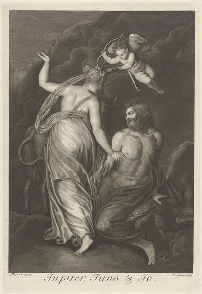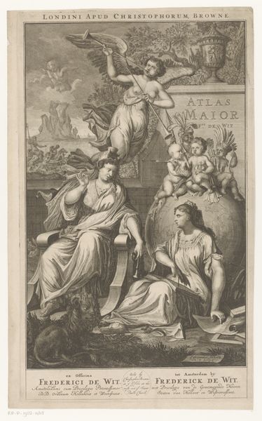 This print, "Mrs. Abington as Thalia," was created by Francesco Bartolozzi around the late 18th century using engraving. Notice how the soft, sepia tones and delicate lines create a sense of classical elegance. The composition places Mrs. Abington, an actress, in the guise of Thalia, the Greek muse of comedy, alongside symbolic objects. The mask of comedy she holds, the bust crowned with laurel, and the lyre, are all conventional signs that work together to speak to her talent, fame, and the broader cultural values associated with theater and the arts. The arrangement of these components into a harmonious figural composition suggests an underlying structure, an allegorical system which invites us to decode its cultural references. The linear precision and idealized forms reflect the Neoclassical aesthetics of the time, emphasizing reason, order, and a revival of classical ideals. It is a construction that invites ongoing interpretation of historical and cultural meanings.