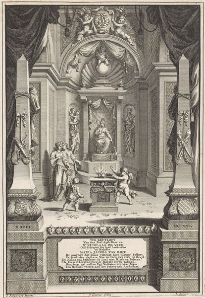 Jan Goeree created this print, “Allegory on Legal Proceedings,” sometime between 1670 and 1731 in the Netherlands. It allegorizes the idea of justice through its visual codes, cultural references, and historical associations. The setting seems to be a courtroom or a hall of justice. The central figure, presumably representing Justice, is seated on a throne-like structure, surrounded by various figures. Themis, the goddess of divine law and order, is also present. In 17th and 18th century Dutch art, allegory served as a powerful tool for social commentary, often used to critique or uphold existing institutions. Goeree’s choice of allegory reflects the intellectual climate of the time. The Dutch Republic, known for its legal scholarship, saw legal themes frequently depicted. Understanding the precise context of this print requires a deeper dive into the legal and political history of the Dutch Republic. By examining the print through the lens of its social and institutional context, we can better understand its commentary on the legal proceedings of its time.