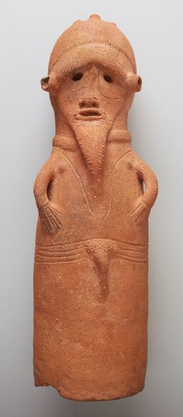 This marble female figure was crafted in the Cyclades, a group of islands in the Aegean Sea, sometime during the early Bronze Age. These sculptures, with their highly stylized and flattened forms, invite us to consider the beliefs and social structures of the Cycladic people. The figure's gender is subtly indicated, suggesting a focus beyond mere physical representation. As such, it serves as a potent symbol, possibly linked to fertility, or maybe a spiritual connection. Crafted by an anonymous artist, the sculpture speaks to a shared cultural understanding. The artist's choice to use marble, a precious material, highlights the figure's significance. The figure embodies the hopes, fears, and worldview of its creators. It asks us to reflect on the universal themes of identity, spirituality, and our place in the world.