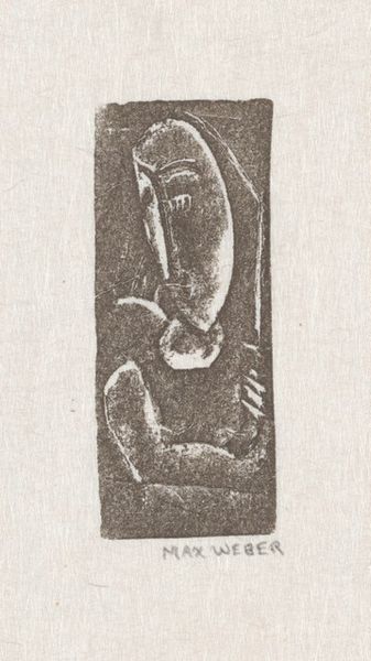 Max Weber made this print, called Figure, using a woodcut. I can see the knife marks in the blocky shapes, each cut a decision. I love how this process makes you slow down, and each mark has a weight, a direction, a kind of finality. The figure itself is so strange and simple: a sort of totem with a head like a bird and a body that looks like a vase. Those hands clasped in front, they bring a stillness to the piece. And this quietness is echoed in the tones of grey, which are so subtle and gentle. Thinking about other artists who had a similar approach, I'm reminded of someone like Marsden Hartley, who similarly used simple forms and dark tones to evoke a very particular feeling. Art is like a conversation, so that each mark is also a question.
