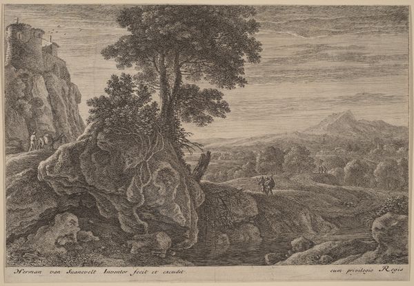 Herman van Swanevelt made this etching in the first half of the seventeenth century, a time when Dutch artists like Swanevelt were developing new ways to depict landscape. Notice how the composition is arranged to draw your eye into the distance. But also note that the print is framed within an oval, like a collector’s gem. The figures are dressed in classical garb, which lends a sense of romance and timelessness. We can assume that Swanevelt spent time in Italy: this idyllic scene looks like the Roman Campagna, where he lived for a time. We might ask, what exactly were Dutch artists doing painting Italian landscapes? By the seventeenth century, landscape painting had become something of an industry. But its growth also speaks to the changing social status of art and the institutions that supported it. A print like this, reproduced and collected, was a commodity as much as it was a work of art. By looking at Swanevelt's biography and the history of landscape printmaking we can better understand the social and economic context for this image.