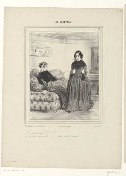 Editor: Here we have Winslow Homer's 1863 lithograph, "Campaign Sketches: The Letter for Home," currently housed at the Art Institute of Chicago. The grey tones and intimate setting really give off a sense of quiet reflection amidst what must have been a chaotic time. What formal elements stand out to you in this work? Curator: The composition is intriguing, immediately directing our gaze to the central figures: the woman writing and the wounded soldier reclining. Note how the artist employed light and shadow to create a sense of depth and to subtly separate them from the indistinct forms of other recuperating men who seem far off. The contrast in textures is equally significant: the smoothness of her shawl juxtaposed with the rough textures of his blanket, differentiating care from weariness. Editor: So you’re focusing on the interplay of textures and lighting? What about the larger message? Curator: Let us resist imposing narrative assumptions onto the aesthetic presentation. The diagonal lines formed by the bedclothes pull our focus from the letter towards an open, geometrically arranged window with the outside world reduced to fractured forms. Are we to assume the patient can read? Look also at the window's compositional relation to the white paper in her lap: one reflecting fractured outside views and the other about to be filled with words, perhaps also with falsehoods. What semiotic reading of these combined elements could we pursue? Editor: I see what you mean. It’s less about the literal story, and more about the visual dialogue between the objects. The composition asks questions that easy interpretation won't fully reveal. Curator: Precisely. The true substance of this piece rests not merely in its ostensible subject matter but its deliberate and evocative arrangement of forms and visual textures. It really challenges what we see and expect of narrative and genre subjects during a pivotal point of Romanticism. Editor: That's helped me look at the print with new eyes. I’m taking away the importance of considering the arrangement and qualities as a crucial way to interpret art, regardless of any narrative context. Curator: Indeed, looking closely allows the art to speak on its own terms, allowing multiple avenues of discussion that broaden meaning in this lithograph.