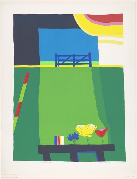 Harrie Gerritz made this screenprint, Landschap met rode coulisse, where the layering of colors feels playful, almost like you could peel them off one by one. See how the flat, bold reds and blues butt up against the greens, each shape declaring itself. There's a real joy in the materiality here, you can imagine the squeegee pulling ink across the screen. Look at the red 'coulisse', that's French for 'backdrop' - that's what it looks like! The tree trunk behind it is a simple, stark shape, yet together they create a kind of window onto another world. It makes me think about how much we, as artists, rely on these basic shapes to conjure up something bigger. This piece reminds me a little of Patrick Caulfield’s deadpan pop sensibility. Gerritz, like Caulfield, embraces the power of simplicity, showing us that sometimes, less really is more.
