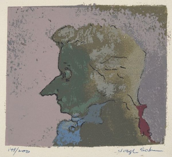 Editor: We’re looking at Joseph Solman's "Untitled (Mozart Profile to Viewer's Left, Multiple Colors On Dark Brown Background)" from 1945. It's a mixed-media piece on paper. It’s quite striking – a somewhat distorted profile emerging from a dark background. What do you see in this piece? Curator: You know, I see a ghost of an idea, a whisper of Mozart, really. The colors feel both vibrant and melancholic. It’s like Solman’s capturing a fleeting memory, not just of a face, but of a feeling. Almost as if he saw him across a crowded, smoky bar. Editor: A fleeting memory...I like that. It feels very immediate. Is that part of the Abstract Expressionist style? Curator: Exactly! This is Solman riffing on Abstract Expressionism. Notice the seemingly haphazard strokes, the colors bleeding into each other. But it’s also deeply representational; he is depicting a person, or some-one who once was a person, making a profile we expect, almost crave, from this figure. The distortion actually enhances the emotional intensity, don't you think? Editor: I see what you mean. It's not a precise portrait, more an emotional impression. The colors definitely contribute. Were works like this politically charged in the '40s? Curator: That's a great question! I see this more as introspective art responding to a world recovering from profound, seismic level events, reflecting personal struggles rather than direct political statements. Art trying to process things too terrible for clear depictions. So you tell me, are you left thinking about life now, art then, or Mozart himself? Editor: Wow, it all sort of blends together, doesn’t it? Seeing this really challenges how I think about portraiture. Curator: Indeed, you can feel this portrait, this glimpse. Always let the artwork leave its trace on you, you'll not regret it.