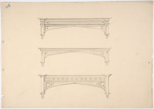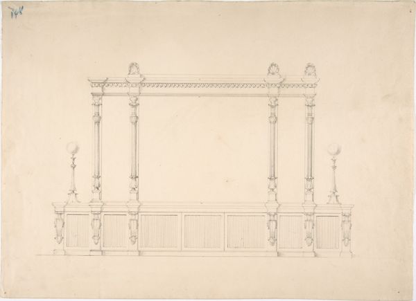 Editor: Here we have an intriguing drawing entitled "Design for a Mirrored Sideboard with Diminishing Legs and Foliate Ornament," created sometime between 1800 and 1850. It appears to be a study in pencil, etching and print on paper. I’m immediately struck by the level of detail and symmetry in what’s ultimately a utilitarian object. What do you see in this piece? Curator: Beyond the clean lines and neoclassical aesthetic, it is interesting to see design so intentionally tied to power. This sideboard wasn’t just functional, it was meant to broadcast status, a display of wealth and taste in a period of intense social stratification. What are your thoughts on the role of mirrored surfaces in interiors of that era? Editor: I imagine mirrors expanded the perception of space and light, reinforcing that sense of grandeur you mentioned, but was that accessible to everyone? Curator: Absolutely not. Mirror production was expensive. By incorporating such design elements into everyday items, the aristocracy solidified their visual language. Consider how spaces themselves – palaces, great homes – become tools for control, for managing perception, reflecting a highly curated image of power. Editor: So the sideboard design embodies the values and social structures of the period in which it was created? Curator: Precisely. By examining these objects, we gain insight into not only the aesthetic preferences but also the power dynamics at play during the Neoclassical era. These designs are not innocent. They perform labor, defining roles and behaviors of all involved. Editor: That’s a fascinating perspective. I hadn't considered the design in the way that those visual markers can reflect an image of societal aspirations. Curator: These visual artifacts, though seemingly innocuous, held significant meaning, acting as silent but powerful communicators within their social contexts.