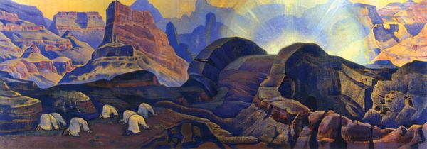 "Doring, Tibetian menhirs" was painted by Nicholas Roerich, a Russian artist drawn to spiritual and mystical themes, during a time of intense geopolitical change in the early to mid-20th century. Roerich's painting presents an expansive view of standing stones in Tibet, a region that held deep spiritual significance for him, inspired by the Theosophical Society. His artistic expeditions into Asia were often interpreted through the lens of his spiritual beliefs and a fascination with ancient cultures. The image evokes both a sense of timelessness and isolation. The stones could be seen as silent witnesses to centuries of cultural and historical events, reflecting the artist's vision of a spiritually interconnected world, influenced by both Eastern and Western esoteric traditions. Roerich saw himself as a cultural ambassador. His idealized representations of the East and his spiritual quest invites reflection on how cultural and historical contexts shape our perceptions and representations of "otherness." The painting encourages a personal connection with the landscape, stirring a sense of contemplation and a longing for spiritual understanding.