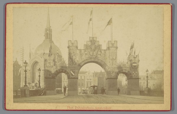 Editor: Here we have "Reproductie van een tekening van Huis Warmond," or Reproduction of a Drawing of Warmond House, which the museum estimates was created sometime between 1875 and 1950, and signed "W. Versluys". It's a pencil drawing, and it evokes a feeling of serene solidity, like the castle has stood the test of time. The balance in the composition is very noticeable. What stands out to you? Curator: Immediately, the formal properties establish a visual hierarchy. The artist employed linear perspective to create depth, but note how the even distribution of light flattens the image, preventing true recession. The texture achieved with varying pencil strokes also contributes to this tension between depth and surface. Observe how the geometric shapes--the towers, the walls, the gate--are meticulously rendered. Editor: So, you're focusing on the formal components rather than, say, the historical relevance of the house? Curator: Precisely. My inquiry centers on the intrinsic artistic elements. Consider the careful arrangement of vertical and horizontal lines. What does that evoke for you? Editor: Well, the verticality of the towers definitely emphasizes their height, but then the horizontal lines of the walls create a sense of stability. It's like a visual push and pull. Curator: Exactly! The artist plays with these oppositions, creating a balanced composition that is also somewhat unsettling. The lack of human presence further amplifies this sense of detached observation, almost as if we're viewing an idealized architectural form. Editor: That's a fresh perspective! I was initially drawn to the peacefulness, but now I see the tension created by the almost clinical observation and the push-and-pull of the line work. Curator: Exploring such tensions are inherent to appreciating a drawing like this; by appreciating how line, tone, and composition contribute to the overall impact of the work we move beyond simple representation.