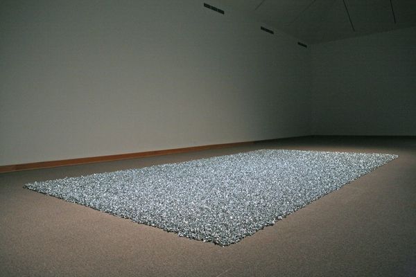 Curator: Ai Weiwei's "Sunflower Seeds" is a powerful installation, currently held in the Tate collection. It invites contemplation on mass production, individual identity, and geopolitical narratives. Editor: Wow, from a distance, it just looks like a grey hill...almost lunar, a desolate landscape. But up close, it’s so much more intricate. Curator: Absolutely. What appears uniform is, in fact, composed of millions of individual, handcrafted porcelain seeds. The work addresses China's history of mass production and its impact on individual expression. Editor: It's like a bittersweet paradox, isn't it? This overwhelming mass is built from so many tiny, unique efforts. So many hands touched each seed to create this collective statement. Curator: Indeed. It prompts us to consider the human cost of industrialization, the tension between the collective and the individual. Editor: It makes you wonder about the unseen labor, the quiet stories embedded in each piece. Art is about the message, but it also has to do with the humanity that creates it. Curator: These seeds serve as a reminder that even in uniformity, there is inherent value and strength in the multitude of individual voices. Editor: Yeah, it’s both a commentary and a strange, beautiful monument to human effort.