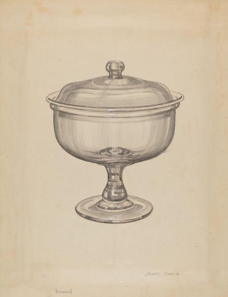 Curator: There's a quietness to this. It's a pencil drawing, nearly photographic in its realism. There's almost a humble quality to it, the way the light glances off the metal. Editor: Indeed. What strikes me immediately is how everyday the object is, and yet it’s rendered with such care. This is Horace Reina's "Sugar Bowl," made around 1936. One has to consider how the mundane subject gains significance through the sheer act of depiction. How does something so quotidian become a worthwhile subject for artistic exploration? Curator: Perhaps Reina wanted us to look again, to find beauty in the things we overlook. I can almost feel the cool metal and envision the weight of the sugar within it. You can sense the purpose in its simplicity. Editor: And yet the "Sugar Bowl," becomes symbolic. Think of the 1930s: the Depression, anxieties about material stability. Rendering a common object so meticulously might speak to a desire for permanence. It feels like a gentle reassurance about the continuity of domestic life. Curator: That's beautifully put! There’s a sensitivity, an honoring of the everyday that makes it feel quite moving. Editor: I agree, and consider that this drawing would’ve been encountered in a gallery, institution, or pedagogical setting. What message does it send, that such a drawing can sit next to a painting? That a humble drawing can provoke thoughtful commentary such as what we're doing now? That says much about what the art world valued then—and now, too, in its display. Curator: Exactly, to ennoble simplicity. This bowl holds stories of mornings, shared moments, and a life distilled into quiet ritual. That's what lingers. Editor: For me, I'm captivated by how Reina makes us consider value, both in objects and art itself. The choice to depict a common sugar bowl, and display it within a museum... it asks what we value and why. Curator: Well said! A spoonful of beauty to sweeten our day and our thoughts, I suppose. Editor: Indeed, an exquisite contemplation on the power of the ordinary.