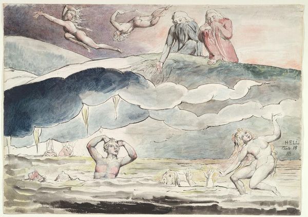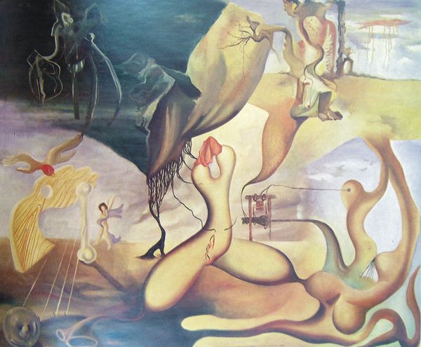 Arnold Peter Weisz-Kubínčan painted this composition featuring a seated man and floating figures, likely in the early 20th century. The painting is defined by a clear division between earth and sky, or the real and the imagined. Kubínčan uses a palette dominated by cool blues and greens, setting a tranquil yet melancholic mood. The earthly and ethereal realms are separated by a stark horizon line, establishing a visual tension. The seated man, rendered in warm earthy tones, is the focal point of the lower half, his contemplative posture inviting introspection. Above, the ghostly figures float ethereally, their elongated forms suggesting a dreamlike state. Kubínčan juxtaposes the grounded stability of the lower register with the fluid instability of the upper one. The painting asks us, through its very structure, to consider the relationship between our internal and external worlds. The artist challenges us to contemplate the boundaries of reality.