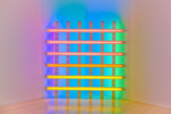 Regine Schumann created "Colormirror Chelsea Seven" with fluorescent acrylic, a material commercially available and often used in signage. Schumann works with these industrially produced materials to explore how light and color interact, transforming them into visually dynamic artworks. The acrylic sheets are carefully selected for their color properties and then precisely cut and assembled. The inherent qualities of the acrylic, its ability to transmit and reflect light, are crucial to the artwork’s appearance. The fluorescent nature of the material means that the colors shift and change depending on the ambient light, creating an immersive and ever-changing experience for the viewer. Schumann elevates a common industrial material, acrylic, to the realm of fine art, blurring traditional boundaries. By focusing on the material’s potential for light and color play, she questions the values placed on certain materials and practices over others.