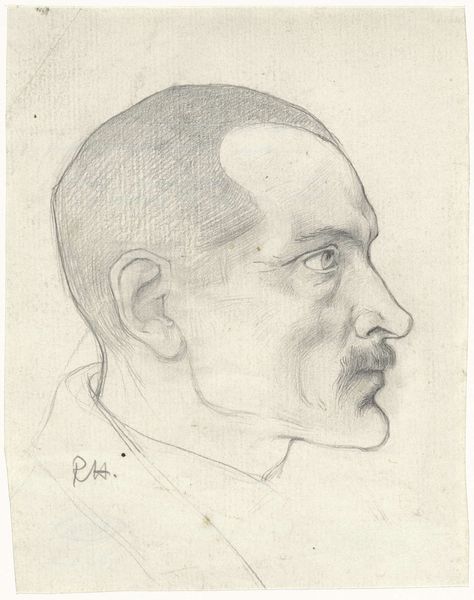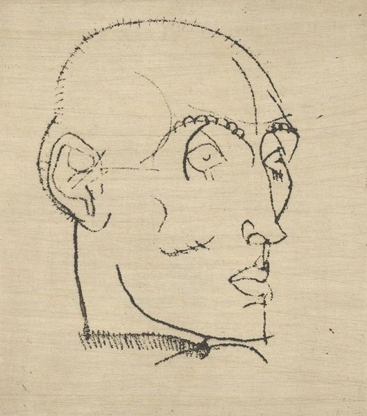Curator: Eric Gill's drawing, titled "Prior of Caldey," presents a profile view, simply rendered with fine lines. Editor: The starkness of the lines against the blank paper creates an atmosphere of monastic austerity. It feels very controlled. Curator: Absolutely. Gill, who explored religious themes throughout his career, here portrays the prior. It’s important to remember Gill's complex relationship with Catholicism and his controversial personal life. Editor: The tonsure is a powerful symbol, representing renunciation and devotion. Its circular shape mirrors the cyclical nature of religious life. Curator: It does speak to the rejection of worldly vanity, but one could also view the tonsure through the lens of power dynamics within religious structures. Editor: Perhaps, but I'm drawn to the way the simplicity of the lines emphasizes the inner character, the weight of responsibility etched on his face. Curator: It’s a potent image, prompting reflection on faith, authority, and the complex relationship between the artist and his subject. Editor: Yes, a very striking piece—Gill captures a certain essence.