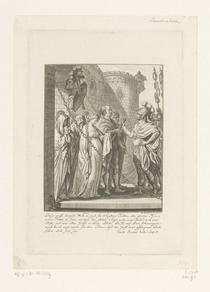 This print, made by Reinier Vinkeles, depicts the Cadaver Synod of 897, a grim moment in papal history. Here, Pope Stephen VI puts the corpse of his predecessor, Formosus, on trial. Made in the Netherlands during the 18th century, Vinkeles' print speaks to a broader European fascination with historical narratives, particularly those involving moral or political lessons. This interest often intertwined with the religious and political tensions of the time. The print’s focus on papal corruption and infighting is certainly a critique of religious authority, which has roots in the reformation. By highlighting such episodes, the artwork subtly questions the Church's moral authority and its role in contemporary society. To truly understand this print, we need to consider the social context of both the event itself and its later representation. Historical texts, theological debates, and political pamphlets can all provide further insight into the complex interplay between art, power, and social commentary.