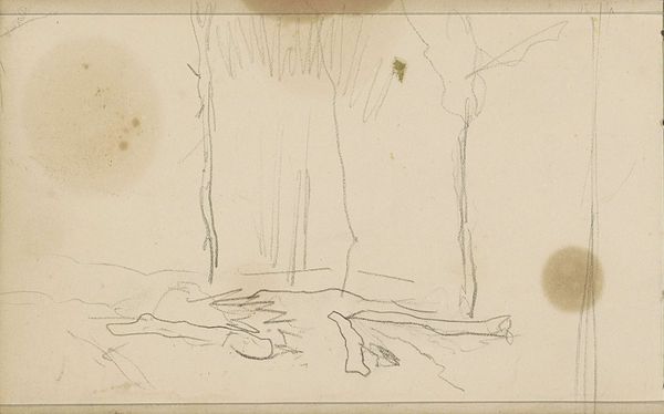 Johannes Tavenraat sketched 'Liggende boomstronk' or 'Lying Tree Trunk' with pen in ink on paper. Tavenraat, born in Rotterdam, lived during a period of significant social and political change in the Netherlands. In this seemingly simple sketch, one can see more than just the realistic depiction of nature. It is also a cultural artifact shaped by the artist's experiences, reflecting the broader cultural values of the time. The level of detail devoted to the tree trunk suggests an appreciation for the natural world, maybe even an understanding of how intertwined our lives are with nature. Consider the labor and resources involved in the creation of the artwork itself. Paper, ink, and the artist's time all represent a certain level of privilege and access. The act of creating art was often intertwined with gender and class dynamics, shaping who had the opportunity to express themselves creatively. This piece invites us to consider our relationship with nature and the world around us.