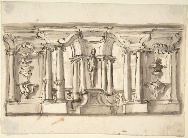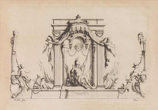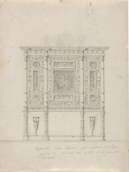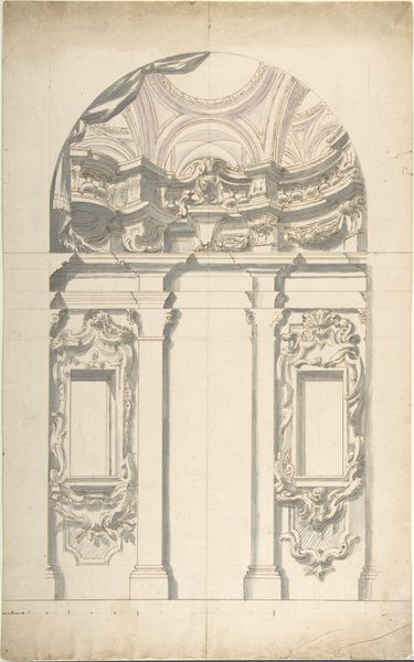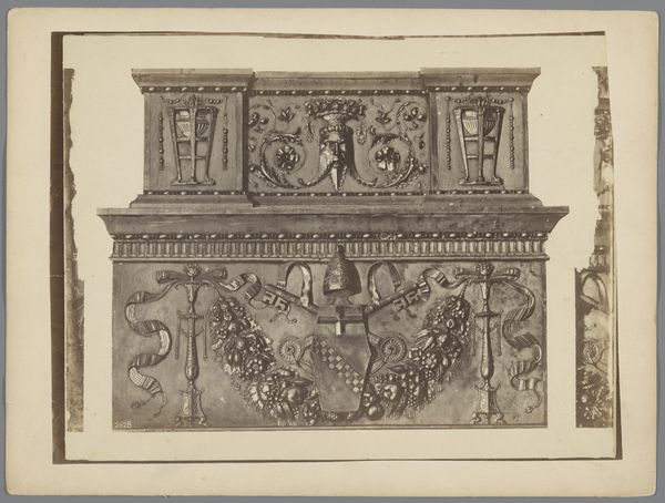 This is Placido Columbani's 'Kroonlijst met vazenmotief', or 'Cornice with vase motif'. This design offers us a glimpse into the world of 18th-century interior design. It reflects the era's fascination with classical forms and decorative embellishments. The symmetrical arrangement of vases and foliage evokes a sense of balance and harmony, which was highly valued. But beyond its aesthetic appeal, this cornice hints at the social structures of the time. Consider the skilled craftsmanship required to create such intricate details. These designs would have been commissioned by wealthy patrons. These spaces would have reflected the social standing and cultural aspirations of those who occupied them. The cornice, with its blend of classical motifs and ornate detailing, reminds us of the ways in which art and architecture have been used to shape our experiences of space and identity.