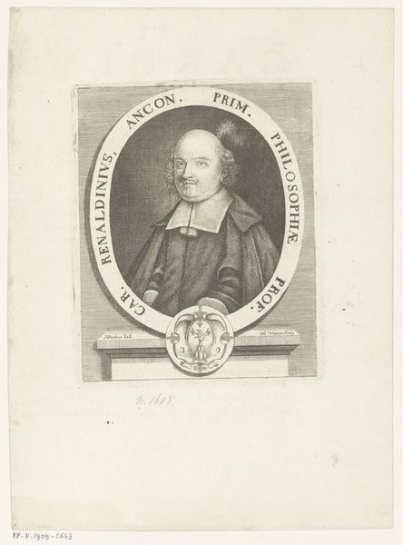Christian Romstet created this portrait of Johann Kemmel, likely sometime between 1676, the year inscribed on the print, and Romstet's death in 1721. The portrait offers a window into the religious and intellectual life of the 17th and 18th centuries. Kemmel, a pastor, is framed by an inscription denoting his roles and affiliations. Consider the power dynamics inherent in religious leadership during this era, and how Kemmel's position shaped his identity and influence within his community. His clothing, typical of the clergy at the time, speaks to the visual codes that reinforced social hierarchies. The Latin inscription at the base is a reminder of the dominance of classical education and the intellectual elite. This portrait serves not only as a record of Kemmel's likeness but also as a statement of his status, beliefs, and the values of his time. It allows us to reflect on how individuals like Kemmel navigated the complex interplay of faith, knowledge, and social standing.