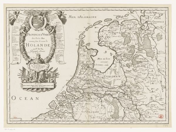 Curator: This is "Historische kaart van Nederland en het Noordzeekanaal," a historical map of the Netherlands and the North Sea Canal, made sometime between 1800 and 1854 by Willem Cornelis van Baarsel. It’s an engraving, currently held in the Rijksmuseum. Editor: Immediately, the stark lines and dense detail strike me. It feels very technical, but there’s a kind of artistry to the precise depiction of the landscape. What was the function of this piece? Curator: It was likely produced during the planning or early construction phases of the Noordzeekanaal – the North Sea Canal – intended to provide Amsterdam with a more direct trade route. The print’s distribution would have been very calculated for bureaucratic use. Editor: So, not intended as a display piece? I am really interested in its cultural relevance then, for this level of detail of water and earthworks to be so carefully recorded through print. Curator: The engraving highlights the changing relationship between the Dutch and their landscape. Consider how labor was materialized in controlling the waterways; such a complex project reflected the Dutch engineering prowess. We see here that the means of creating infrastructure could be considered a high form of both technical execution and of art, or a careful blend of both in a consumable print format. Editor: Precisely! And this print, displayed now, performs a cultural function, revealing historical ambition and the way the land has been sculpted. Was it unusual for maps to receive this artistic treatment? It appears to have many artistic qualities outside of practical renderings of spatial navigation. Curator: Mapping in the Netherlands had a long tradition; in the Golden Age it had already taken off as both a cartographical science and as an exercise in carefully detailed, reproducible design and printmaking. Van Baarsel capitalizes on that pre-existing aesthetic here in this scene. The act of engraving itself – the repetitive labor of carving lines into a metal plate – echoes the literal labor of reshaping the land that the map depicts. Editor: It's a fascinating piece that operates on many levels: art, history, and industrial labor. It prompts consideration of human interaction with nature and how this interaction reflects larger societal ambitions, right? Curator: Exactly, a carefully considered materialization of Dutch ambition and spatial strategy, expertly designed and delivered for maximum reach. Editor: The way it highlights infrastructure development alongside the pre-existing geography also raises vital considerations around cultural influence, not just technical or engineering brilliance. Curator: I agree; understanding the intersection is fundamental.