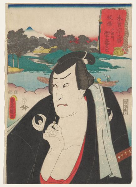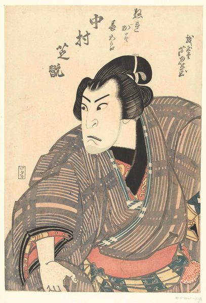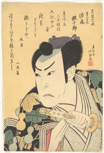 This woodblock print depicts the actor Nakamura Utaemon III as Inanoya Hanbē, and was created by Shunkōsai Hokushū in Japan in the early 19th century. The print offers us a glimpse into the vibrant world of Kabuki theatre and its stars. The actor's intense gaze and dramatic pose are visual codes that would have been instantly recognizable to audiences of the time. Kabuki was more than just entertainment; it was a social event, a space where class boundaries could be blurred, and where the latest fashions and trends were displayed and disseminated. Woodblock prints like these played a vital role in popularizing Kabuki and its actors, functioning almost like celebrity endorsements today. To understand this image fully, we need to delve into the social and cultural context of Edo-period Japan, exploring the role of theatre, the status of actors, and the economics of printmaking. Through these avenues of investigation, we can better understand the complex interplay between art, commerce, and society in 19th-century Japan.