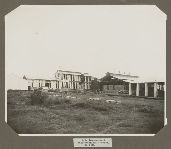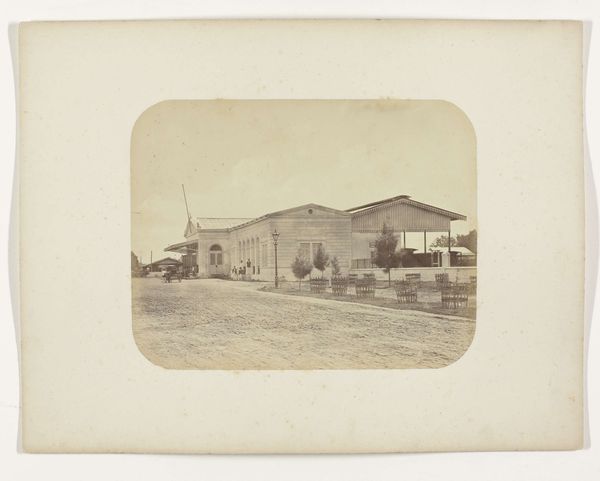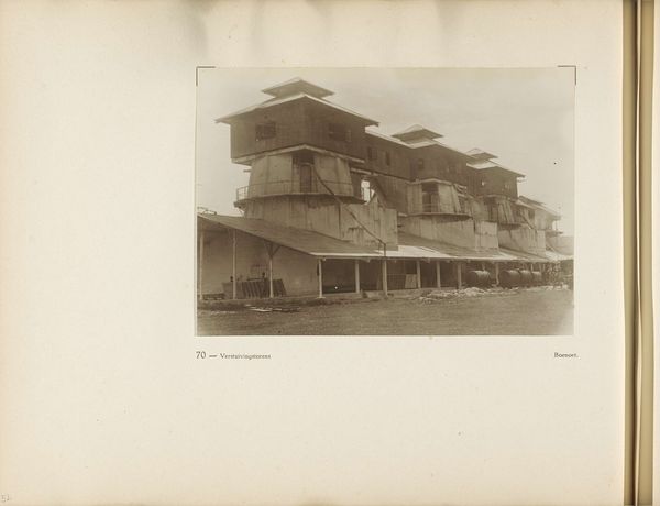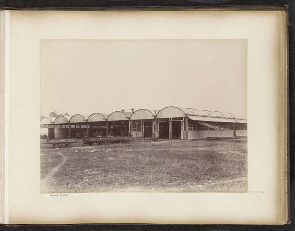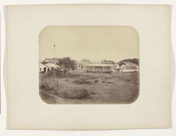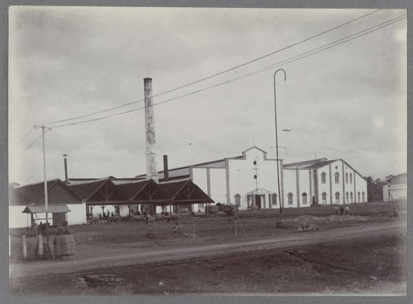 Editor: So, we're looking at a photograph from before 1905 by G.R. Lambert & Co., titled "View of the machine house of the Tanjong Pagar Dock Co. Ltd. in Singapore." The sepia tones give it such a distant feel. I'm curious, what story do you think this photograph tells? Curator: For me, it's about the cultural impact of industrialization on Singapore, represented through these forms: The rigid lines of the buildings suggest functionality but contrast with the openness of the surrounding landscape. Consider the chimney—a phallic symbol of industrial power asserting itself upon the natural environment, almost a signifier of societal aspirations for advancement and control, yet casting a long shadow in its wake. What does it suggest to you? Editor: I hadn't considered it like that. I saw the chimney more as a practical structure, but the idea of it representing control... it definitely shifts my understanding. It feels a little sinister now. Curator: Precisely. It’s about the layering of meaning. Note how the building materials echo or clash with the natural environment, signifying humanity imposing its will upon the landscape, too. Editor: It's fascinating how much meaning can be layered into a seemingly simple image. Thanks for illuminating some of those layers! Curator: My pleasure! It's in these layers that the past speaks to us, offering a mirror to our present aspirations and anxieties.