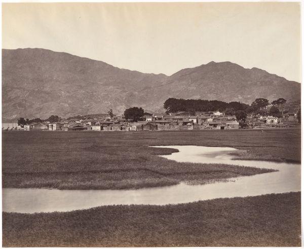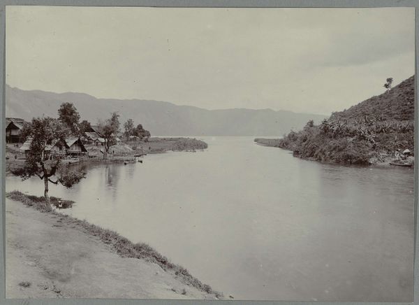 Editor: Here we have an early photograph, dating from sometime between 1903 and 1913, titled "Takengon aan het meer Laut Tawar." It presents a panoramic view of a village nestled beside a lake, with mountains in the distance. The scene is bathed in a sepia tone, giving it a somewhat dreamy quality. How do you interpret the symbolic elements in this image, particularly in relation to its historical context? Curator: Well, at first glance, the photo offers what seems a tranquil landscape. Yet, beneath the surface lies a more complex narrative, shaped by its place in the Orientalist tradition. Notice how the photographer frames the 'exotic' village life against the vast, 'untamed' natural backdrop. The placement isn't accidental. It subtly reinforces a power dynamic, contrasting the seemingly simple dwellings with the grandeur of nature. It's worth considering, who was this image made for, and what expectations of the "Orient" were they hoping to see confirmed? Editor: That's interesting. So the composition itself carries a kind of coded message about civilization and nature? Curator: Precisely. And the sepia tone adds another layer, romanticizing the past. But remember, cultural memory isn't static. This image likely served different purposes for the colonizer versus the colonized. Think about what this landscape represents to the local inhabitants – a space of community, of ancestry, perhaps of resistance – things a simple photograph cannot easily convey, don’t you agree? Editor: Absolutely, it makes you think about what stories and perspectives are left out, too. Thanks! It provides a good look at visual layers. Curator: Yes! These photographic windows on the world always benefit from asking more than they immediately answer. The power of a visual symbol is not in what it shows but in what it evokes and conceals.