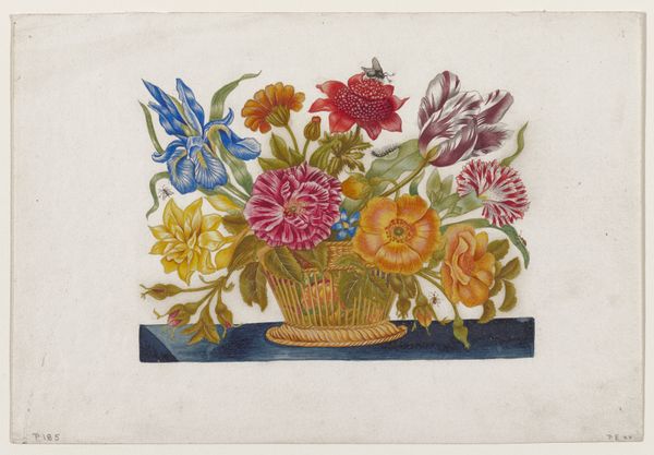 This small print, "Mand met bloemen," or "Basket with flowers," is of unknown origin and manufacture. Its delicate lines and muted palette transport us to a world where nature is carefully arranged. Floral arrangements have often been associated with femininity and domesticity, reflecting the historical roles assigned to women in creating beauty within the home. This artwork invites us to consider the ways in which women’s creativity has been both celebrated and confined. The basket itself acts as a metaphor, a vessel containing nature's bounty, subtly hinting at the expectations placed on women to nurture and contain. Do you find yourself contemplating the beauty, and the historical and societal frameworks that define its creation? What emotions does this artwork stir in you?