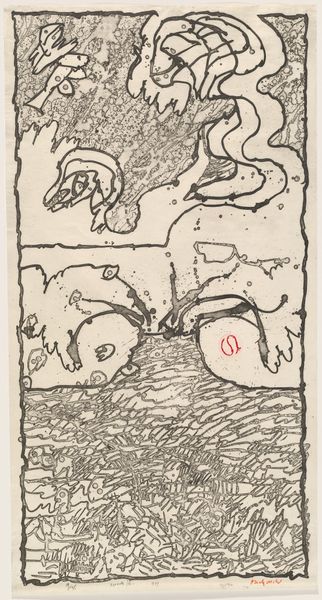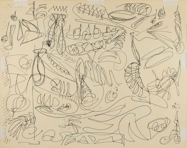 Nikos Nikolaou made this "Composition" with paint, and we can see the material's direct impact on the work's aesthetic. The artist's hand is evident in every stroke, and the process of painting becomes a key element of the artwork. The paint is applied with apparent haste: a furious, yet controlled energy is unleashed on the canvas. Nikolaou employs the simplest of means, just color and line, but with tremendous impact. The visual language is visceral, immediate. Nikolaou was working in the mid-20th century, when abstraction was the dominant mode. Here, we might ask: What kind of labor goes into making this work? Is it just a question of the artist's individual gesture, or does it reflect a broader cultural condition, perhaps even a social unease that calls for the breaking down of conventions? Ultimately, this painting prompts us to consider the relationship between materials, process, and the artist's intent, challenging us to look beyond the surface and explore the deeper meanings embedded within the act of creation.