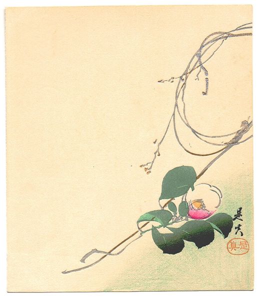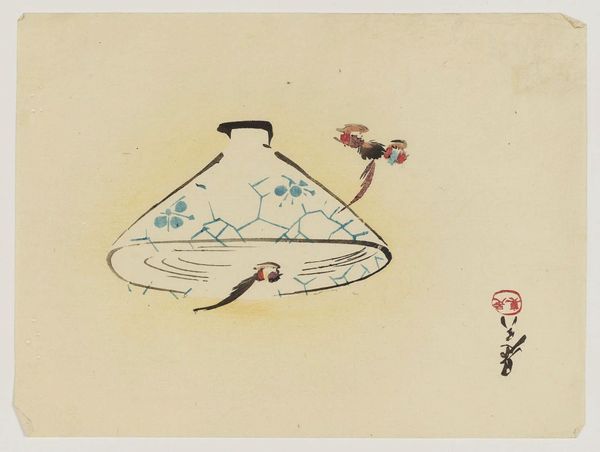 This print of dried persimmons was made by Shibata Zeshin, a 19th-century Japanese artist renowned for his innovative approach to lacquer techniques. The image is not simply painted but built up from multiple layers of woodblock printing, a craft tradition demanding exacting registration and a deep understanding of ink behavior on paper. You can see the subtle variations in tone that create depth and volume. Zeshin would have likely collaborated with skilled artisans, exemplifying a system of labor where the artist designs and specialists execute. The persimmons themselves are rendered with a tactile quality; the artist’s skilled craftsmanship brings attention to their inherent characteristics of texture, weight and form. This elevation of everyday objects, and the labor-intensive process involved in creating this print, blurs the lines between fine art and craft.