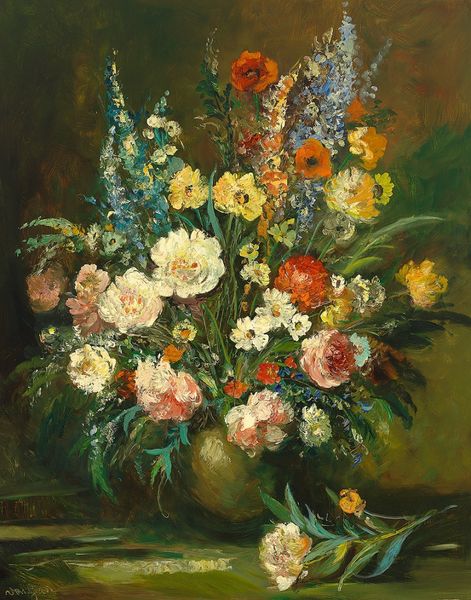 "Christmas Roses" is an intimate still life made by Claude Monet, most likely in his home in Giverny. Monet, the quintessential Impressionist, dedicated much of his practice to capturing the fleeting effects of light and atmosphere; here though, there is a sense of the interior, of domesticity. The painting shows a close-up view of a vase filled with white roses set against a golden background, a marked departure from his more celebrated landscapes. Still life, particularly floral arrangements, was often associated with women artists and domestic artistry. While Monet primarily focused on landscapes, this painting allows us to consider the intersections of gender, artistic expression, and domestic space in the late 19th century. Does this painting expand or challenge traditional representations within domestic space? Perhaps Monet, known for his independence, appropriates a traditionally feminine genre to develop his own narrative. It serves as a reminder of the personal and emotional dimensions of art, and its ability to reflect and shape our understanding of gender roles in society.