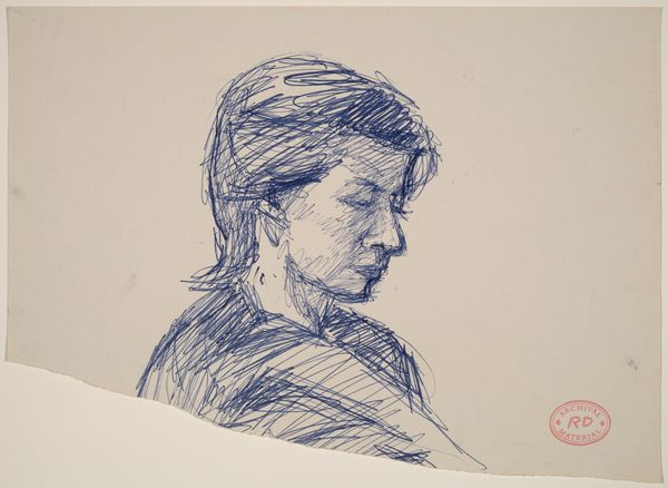 Curator: Sedrick Huckaby’s drawing, "99% NO.53," presents a figure rendered in delicate yet assertive lines, about 8 by 8 and a half inches. There's a palpable sense of quiet introspection. Editor: The labor involved in even a simple sketch carries a significant weight here. The artist emphasizes the subject's hands, suggesting a narrative tied to manual work and the process of creation itself. Curator: Indeed, the choice of subject, likely a person from Huckaby's community, shifts the focus from idealized portraiture to documenting everyday lives. How is the art world complicit in valorizing certain images over others? Editor: And how does Huckaby’s artistic process, his deliberate mark-making, elevate the quotidian? By focusing on the material reality of his subject, we see a direct challenge to established hierarchies of value. Curator: I agree. It prompts us to consider the political implications of representation within the broader art historical canon. Editor: Exactly. The artist seems to be highlighting the value of a life often overlooked. Curator: It's a powerful testament, demonstrating that even the simplest materials, carefully deployed, can carry profound social and political weight. Editor: Ultimately, it brings a compelling reflection on art's ability to memorialize and advocate for unseen individuals.