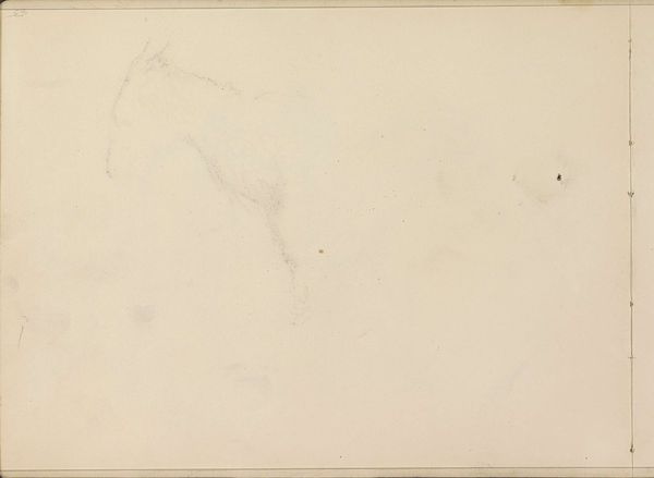 Editor: This work is a pencil and paper drawing called "Abklatsch van de krijttekening op blad 39 verso," made by Isaac Israels sometime between 1890 and 1920. It looks like a landscape sketch, but it's very faint. What do you see in this piece? Curator: This ghost of an image invites a contemplation on memory itself. What is left when an image fades? The landscape appears barely formed, as though glimpsed through a mist or recalled from a dream. Does it evoke a specific place for you? Editor: Not really a specific place, no. It feels like the idea of a landscape, maybe a field or some hills. Curator: Consider how the "abklatsch"—the transfer or impression—acts as a copy of a copy. It becomes less about the subject and more about the process of image-making and transmission. It points us toward the layering of meaning that an image carries across time. We are seeing a shadow, not the original. Editor: So, the act of copying is important? It feels unfinished though, like it needs more. Curator: Perhaps the “unfinished” quality is precisely the point. It challenges the notion of a completed, definitive image. This challenges traditional symbols associated with idealized landscapes, offering instead an image of transient observation. Consider how our memories themselves shift over time, never truly complete or fixed. Editor: That’s interesting. It does make you think about how things change in your mind over the years. I initially thought there wasn't much to see but now it makes me consider how much an image can tell. Curator: Precisely. The ephemeral quality compels the viewer to consider the broader narratives surrounding perception and enduring memory.