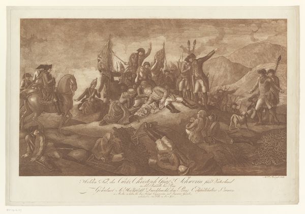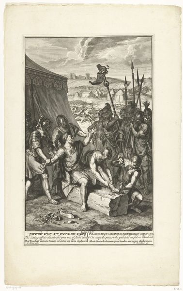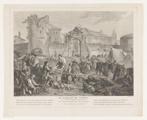 Pietro Monaco created this print, "Christ Falling Under the Weight of the Cross", using etching techniques in the 18th century. It depicts a moment of suffering and physical struggle, central to Christian iconography, but the image also speaks volumes about the social hierarchies and power structures of its time. Made in Venice, Italy, this work reflects the cultural emphasis on religious themes, and the influence of the church as a major patron of the arts. But rather than simply illustrating a biblical scene, Monaco's print uses dramatic composition and stark contrast to evoke an emotional response, inviting viewers to contemplate the implications of divine suffering for their own lives. The print also provides insight into how art institutions, such as printmaking workshops, played a role in disseminating visual narratives and shaping public opinion. Analyzing such works through historical sources – including religious texts, social histories, and institutional records – helps us understand the complex interplay between art, religion, and society.