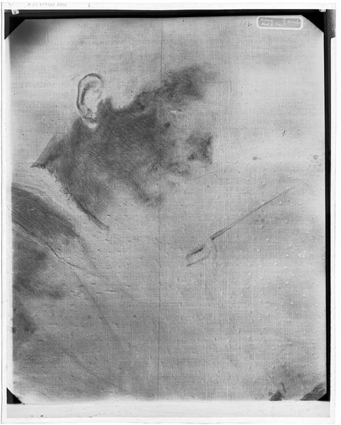 Editor: This X-radiograph offers a peek beneath the surface of Gentile Bellini's "Madonna and Child," revealing hidden layers. It feels almost like an archaeological dig into the artistic process. What historical narratives do you see emerging from this image? Curator: The x-radiograph strips away the veneer of the final image, exposing the artist's hand and decision-making process. Think about the power structures inherent in image creation and the roles of artist, patron, and even the materials themselves. How does this demystification impact our understanding of the Madonna's cultural significance? Editor: It's fascinating to consider the artistic process as a negotiation of power. Seeing the underlayers complicates the image of the artist as sole creator. Curator: Precisely! It prompts us to question notions of authorship and authenticity within the broader context of art history and cultural representation. It is a great tool for dismantling the art world, bit by bit. Editor: I hadn't considered the layers of power dynamics embedded within the painting itself. Thanks for the insight!