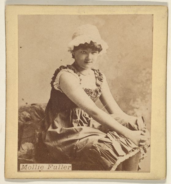 This sepia photograph of Mollie Fuller, part of the Actors and Actresses series by Goodwin & Company, presents a vision of youthful innocence, subtly framed within the conventions of celebrity portraiture. Fuller's pose, seated with hands clasped in her lap, echoes poses found in Renaissance depictions of 'modest Venus'. This pose, deeply embedded in Western art, originally symbolized love, beauty, and fertility, later evolving to embody feminine virtue and humility. Her simple bonnet, reminiscent of rural attire, further enhances this image of purity. Consider, though, how this iconography shifts when placed within the context of a cigarette card. What was once a symbol of virtue becomes intertwined with commerce and entertainment. The image of Mollie Fuller, like Venus, invites desire—but here, it’s a desire subtly linked to the pleasures of smoking. This interplay between innocence and allure speaks to our complex relationship with the symbols and their power to evoke deep-seated emotions. The past is always present, its symbols continually reborn in new and unexpected forms.