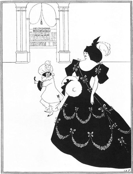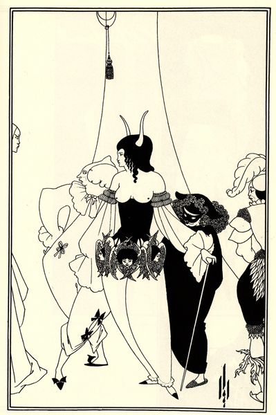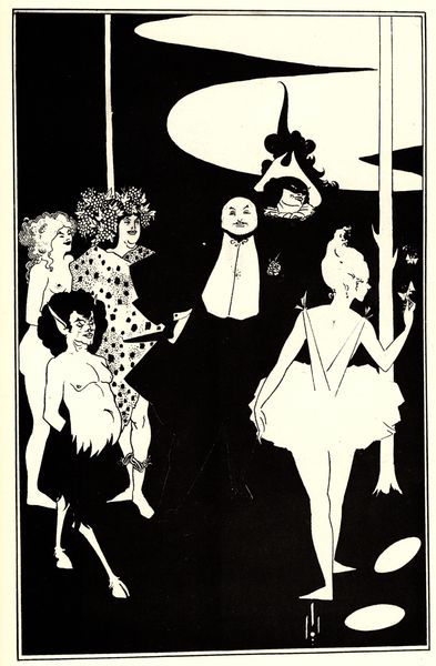 Aubrey Beardsley created this pen and ink drawing, Ballet of Marionettes III, during the height of the Aesthetic Movement in England. The movement emphasized aesthetic values over moral or social themes, seeking art for art's sake. Here, Beardsley brings a theatrical flair to his exploration of artifice and identity. The figures, stylized and poised, evoke a sense of performance, inviting viewers to question the boundaries between reality and constructed roles. The artist toys with themes of gender and power, creating a world where appearances are deceiving, and identities are fluid. Beardsley once stated, "I have one aim – the grotesque. If I am not grotesque, I am nothing.” The exaggerated forms and dramatic contrasts of black and white, are visually striking and emotionally evocative. Beardsley challenges societal norms by creating a space where beauty and the grotesque collide. His bold and unapologetic style continues to invite us to reflect on how we construct and perform our own identities.