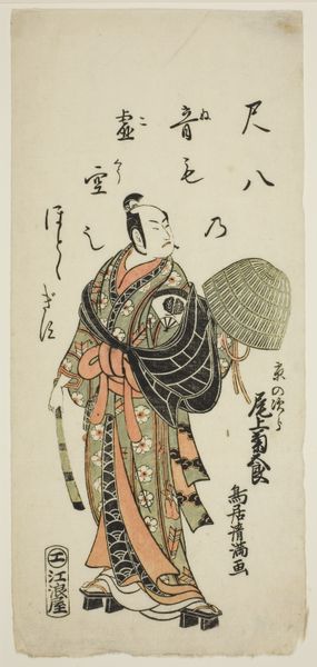 This woodblock print, depicting the actor Ichimura Uzaemon VIII, was made by Torii Kiyonobu I. It is a product of the *ukiyo-e* tradition, which literally translates to "pictures of the floating world.” This art form flourished during the Edo period, and was closely associated with the rise of a vibrant urban culture. Woodblock printing was a collaborative process. An artist would create the initial design, which was then carved into blocks by skilled artisans. These blocks were then used to print the image, often with multiple colors requiring separate blocks for each. The texture of the paper, the precision of the carving, and the careful registration of colors all contributed to the overall aesthetic effect. Prints like these were not considered "high art" at the time, but rather a form of popular entertainment and commercial product, akin to posters or magazines today. Their accessibility allowed a wider audience to engage with art, reflecting the social and cultural values of the era. Understanding its modes of production helps us to appreciate its significance beyond the purely aesthetic.