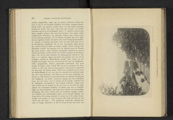 This photographic print from an unknown creator captures a village of the Batak people in Sumatra. The dominant element is the high-contrast range, which delineates forms but flattens the perspective. The composition, while appearing documentary, uses structural repetition to underscore the cultural organization of space. This image of Sumatra provides a glimpse into the semiotics of space and culture. The dark, densely packed forms of the traditional houses contrast sharply with the lighter, open areas. This tension between enclosure and exposure might be seen to reflect broader cultural concerns about community and environment. The linear perspective is flattened, which invites us to question the colonial gaze and the representation of indigenous societies. Ultimately, it is the stark contrast and the structural arrangement of elements within the frame that command our attention, revealing as much about the cultural landscape as about the act of documenting it. The image serves not merely as a visual record, but as a complex interplay of cultural representation and perception.
