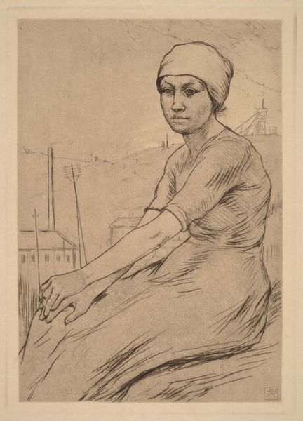 Gerald Leslie Brockhurst made this etching, titled 'Maureen', sometime around the early 20th century. The tonality is developed through the patient accumulation of small marks. The image emerges gradually, like a photographic print slowly appearing in the chemical bath. There's a real sensitivity to the surface here, built from a network of fine lines and hatching. Look closely at the way Brockhurst renders the light falling across Maureen's face and headscarf. Notice how the density of the lines creates shadows, giving depth and volume to the form. The etched lines are so fine, they almost seem to vibrate, giving the image a delicate, ethereal quality. The textures are so important here. Thinking about other printmakers with a similar feel, I'm reminded of Whistler. There's a shared interest in capturing subtle atmospheric effects and a focus on the beauty of simple, everyday subjects. Both artists share a process oriented understanding, embracing open endedness in their work and leaving space for interpretation.