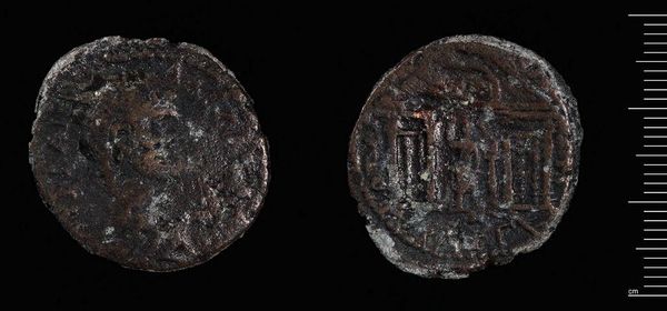 Editor: Here we have a coin of Mattathias Antigonus from Jerusalem. Given its weathered state, it feels quite ancient and weighty, both literally and figuratively. What strikes you about its composition? Curator: The coin presents a fascinating study in relief. Notice how the artist manipulated the surface to create depth, drawing the eye into the central motifs. The material's inherent properties—its metallic sheen and density—contribute to the coin's perceived value and authority. Editor: So, it’s all about how the coin’s physical characteristics create meaning? Curator: Precisely. The coin's design and material speak to the power and the ruler who commissioned it. Editor: I never thought of a coin having so much to say about its materials. Curator: Indeed. A close look at an object's intrinsic qualities often yields the most profound insights.