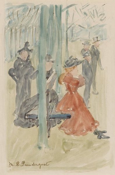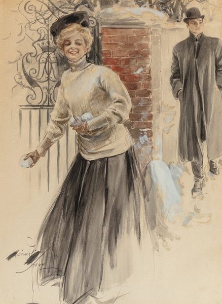 Here's an image of ice skaters, painted by J.C. Leyendecker, though the date isn't noted here, I'd guess it was sometime in the early 1900s. The approach to color here is really about muted tones and soft contrasts. Look at the way the brushstrokes create the texture of the ice, not by smoothing it, but by suggesting its rough, crystalline surface. There’s a process here of layering light and shadow to build up the image, revealing a sense of depth, even where the palette is quite restrained. The physicality of Leyendecker’s paint application is really present in the details. See the way he's dabbed the fur stole around the woman’s shoulders, creating this wonderful sense of volume and weight? It's like he's built up the image piece by piece, almost sculptural in its effect. This reminds me a little of John Singer Sargent, with that bravura brushwork and interest in capturing fleeting moments of everyday life. But Leyendecker has his own distinct voice, an interest in elegance and style that sets him apart. Ultimately, it's about inviting the viewer to bring their own experiences to the table, to find their own meaning in the image.