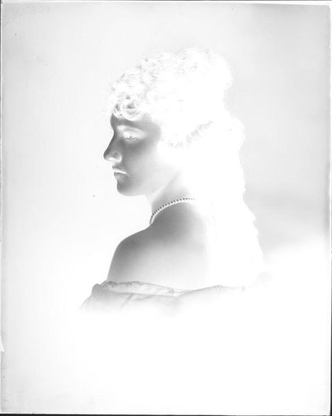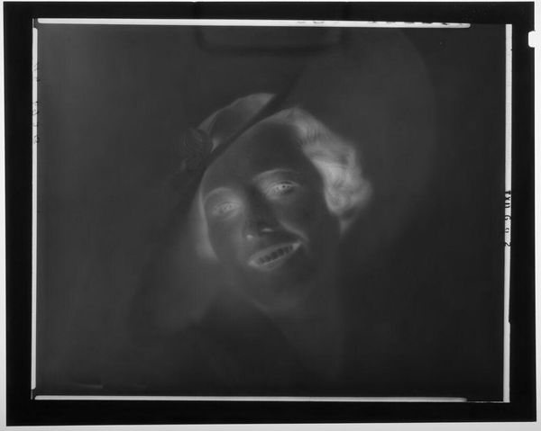 Editor: This photogram, an Untitled portrait by Hamblin Studio, presents a woman with a large hat. It’s ghostly, almost like a memory fading. What strikes you when you look at it? Curator: It whispers of early photography, doesn't it? I see a delicate dance between light and shadow, an almost ethereal quality. It makes me wonder about the woman. Who was she? What was her story? Editor: It's hard to tell much about her with the limited tones. Curator: Precisely! That absence invites our imagination to fill in the blanks. It’s a mirror reflecting our own longings and projections. Editor: I see what you mean. It's more about suggestion than declaration. Curator: Exactly. It reminds us that art isn't just about seeing, but about feeling and dreaming too.
