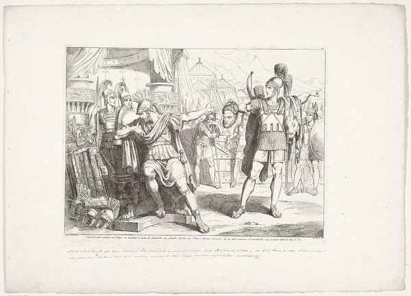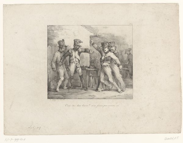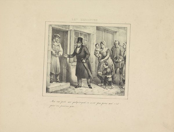 Jean-Louis Van Hemelryck made this print titled "Koning Willem I weigert het aanbod van de kaailopers" in 1829. Here, King William I is shown refusing an offer from the "Kaailopers" to pull his carriage. This term referred to the dockworkers of Brussels, a group often associated with poverty. The print offers a glimpse into the class dynamics of the time. The King, a symbol of authority and wealth, is placed in stark contrast to the working-class Kaailopers. In this moment, the King makes visible a power dynamic, which would have been palpable during the Kingdom of the Netherlands’ rule over Belgium. By rejecting their offer, King William I is refusing their help, and perhaps, symbolically, rejecting a connection with a lower social class. The artwork suggests societal tensions while provoking questions about the relationship between rulers and the ruled. This interaction is captured in a manner that hints at the complexities of identity and status in the 19th century.