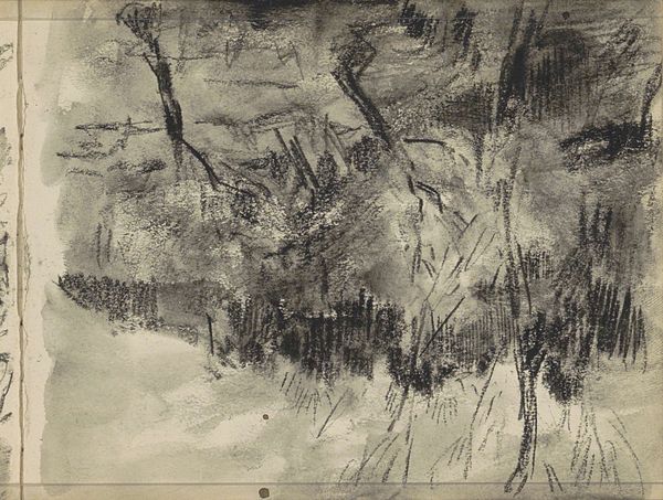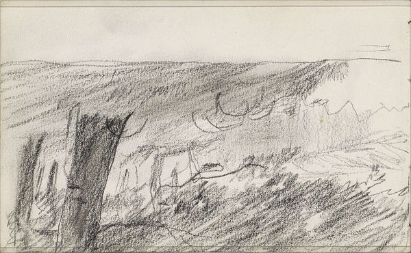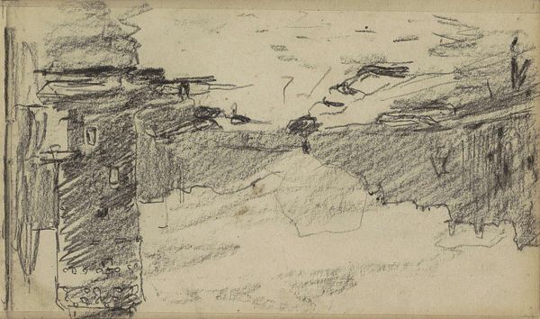 Curator: Well, this is "Landschap" by Johan Antonie de Jonge. It was created sometime between 1881 and 1927 using pencil on paper. Editor: Immediately, I am struck by the ephemeral quality of this drawing. It seems like a memory, fading at the edges, the landscape obscured by a veil. There is a strong sense of melancholy present. Curator: Indeed. De Jonge's choice of a quick sketch reflects a deliberate engagement with Impressionism. The pencil, as a readily available medium, speaks volumes about artistic labor and its democratization at the time. Think about the increased availability of art supplies during the late 19th and early 20th centuries. Editor: I am also seeing more than just materiality. This "Landschap," in its understated presentation, challenges the grand narratives of idealized landscapes typically consumed by the Dutch Bourgeoisie. The bleakness raises questions. Where is this place? Who has access to it? It prompts reflections on land ownership, environmental impact, and the labor intertwined with our access to, and understanding of nature. Curator: Right, but looking closely at the textures, the hatching and cross-hatching techniques employed by De Jonge suggests a methodical, almost meditative process, contrasting with the rugged realities and colonial context of landscapes at this time. How much labor went into this piece itself? The material investigation exposes both beauty and something unsettling. Editor: Agreed. Moreover, landscape as a genre in this period cannot be separated from the broader social and political currents, particularly colonialism. Whose land is being depicted, and how does this artistic representation perpetuate or challenge the status quo of territorial and social exploitation? Curator: This leads us to examining De Jonge's influences. Understanding his engagement with the art world, the social circles he moved in, allows us to consider whether "Landschap" should be viewed as a critique or a reflection of existing social norms. Editor: So by acknowledging that this landscape does not exist in a vacuum, that every stroke and every medium choice is a product of social and material forces, we gain not just an appreciation for the technical skill on display but a deeper consciousness of power, access, and representation. Curator: Yes, examining “Landschap" in this manner makes you consider the commodification of art and the social circumstances necessary for this type of art to exist at all. Editor: For me, considering art in a vacuum without discussing power is how structures of inequity continue to exist! Curator: Fascinating, simply fascinating.