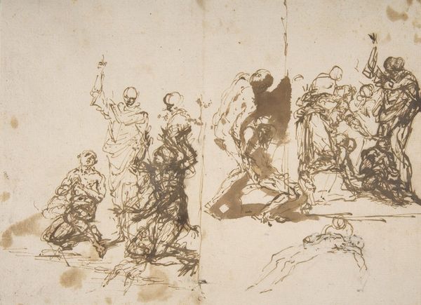 Salvator Rosa sketched this arresting image with pen and brown ink. It shows a figure being hoisted from a grave or pit, a potent symbol of rescue or resurrection. The act of lifting someone from darkness echoes through the ages, from ancient myths to Christian iconography. Think of the raising of Lazarus, a powerful motif of salvation. But here, the ropes add a disturbing element, suggesting not divine intervention, but a more earthly, perhaps even violent, extraction. Consider how this motif recurs—the descent into the underworld and the subsequent return, a journey of transformation and rebirth. This image, charged with primal fears and hopes, engages us on a subconscious level, tapping into our collective memory of mortality and the yearning for deliverance. It resonates because it embodies the cyclical nature of human experience: fall and rise, despair and hope. This is not just a scene, but a mirror reflecting our deepest anxieties and aspirations.