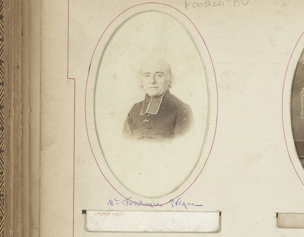 Curator: This portrait, simply titled "Portret van een man, aangeduid als Mr. Benque," or "Portrait of a Man, referred to as Mr. Benque" in English, was created sometime between 1854 and 1871 by Gonzalve Malardot. It's a gelatin-silver print, a relatively early form of photography. Editor: There's a striking ethereality to this portrait. The light is diffused, almost dreamlike, particularly around the figure’s edges. The palette is muted, which contributes to its melancholic mood, as if we are glimpsing a fleeting memory rather than an objective likeness. Curator: Absolutely, and the style is very much rooted in the conventions of its time. Portrait photography during the mid-19th century served a distinct social function. It allowed individuals, particularly those of means, to participate in shaping their own public image. The proliferation of photography also democratized portraiture; which was then largely dominated by painted works, giving a broader range of people the possibility of recording their likeness. Editor: Note, too, how Malardot guides our attention. The subdued backdrop ensures the man’s face is the primary focal point. Observe the careful contrast and delicate graduation from light to dark which gives an elegant symmetry and definition to his features. The soft lighting helps bring the composition to an atmospheric whole, imbuing the photograph with a contemplative atmosphere. Curator: And someone labeled this Mr. Benque - how might the meaning or interpretation of this portrait shift if we could identify and examine who exactly he was? Where was it displayed? Was this image widely available or limited to private circles? Each layer reveals potentially unique insights into the subject’s status and Malardot’s intention. Editor: This image serves as a nice reminder of photography's power, not only to represent the world but also to sculpt the ways in which we perceive reality and create meaning through tonal graduation and compositional strategies. Curator: Exactly. These photographic portraits are significant historical documents, not just for recording faces, but because of the social dynamics and expectations around their production and circulation.