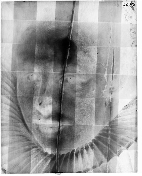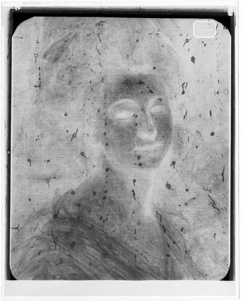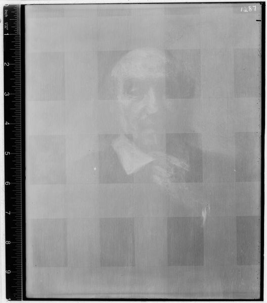 Curator: Here we have an X-radiograph of "Portrait of a Man" by Nicolaes Maes. It resides here at the Harvard Art Museums. Editor: Intriguing! It looks like a ghostly echo. The shades of gray create a very ethereal, almost haunting impression. Curator: The X-radiograph allows us to see beneath the surface, revealing the artist's process, the layers of paint, and any changes made. It’s part of conservation science's commitment to transparency. Editor: Yes, I see the faint outline of a face. Notice how the subtle variations in density give volume to the form. Curator: Indeed. These investigative methods provide insight into 17th-century portraiture and art's role in documenting identity. Editor: It really changes our perception of the finished work, doesn't it? From the finished, polished portrait to this almost ghostly image. Curator: Absolutely, this X-ray provides a unique perspective. Editor: A compelling reminder that art holds more than what meets the eye.