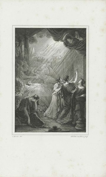 This print, "Holy Women at the Tomb," was created by Gilliam van der Gouwen in the 18th century, a period still heavily influenced by religious and patriarchal norms. Here, we see the biblical scene of women encountering an angel at Christ’s tomb. These women, often marginalized in religious narratives, are central to the story of the resurrection. Yet, even in this pivotal moment, the angel dictates the narrative, reinforcing a hierarchical structure. The women’s grief is palpable, yet their emotional experience is mediated through the divine message delivered by a traditionally gendered angel. The engraving itself speaks to a time when women's roles were narrowly defined, and their voices often unheard. By depicting women as the first witnesses to the resurrection, does the artist challenge or reinforce these norms? Perhaps it subtly acknowledges the vital, yet often overlooked, contributions of women in religious and social spheres. It invites us to reflect on the complex interplay between faith, gender, and power in shaping historical narratives.